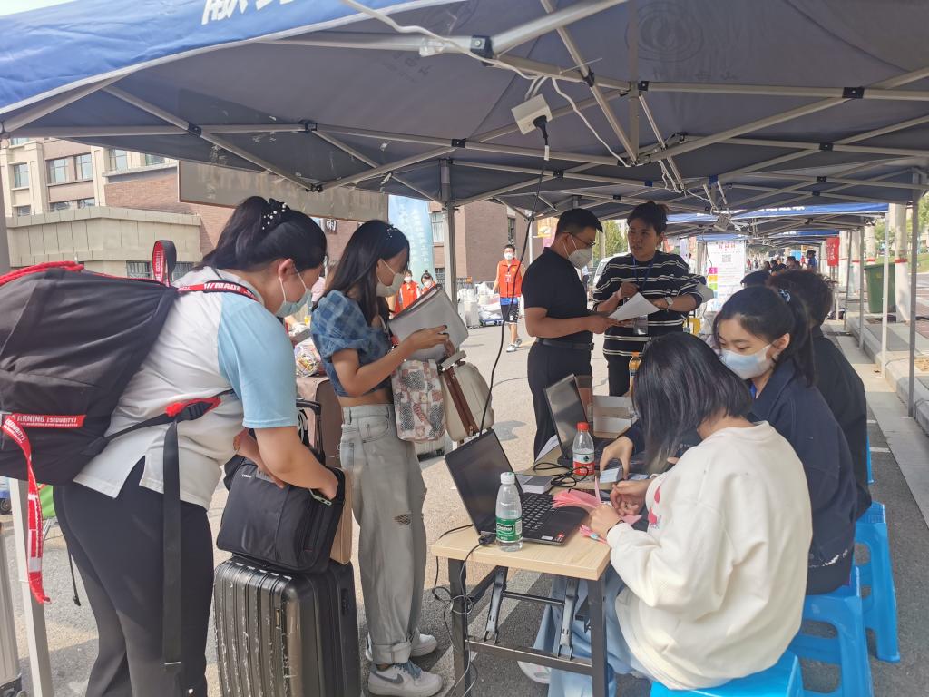 2022年迎新季,在疫情防控常態(tài)化的要求下,學(xué)校成立了以校領(lǐng)導(dǎo)為組長的秋季開學(xué)疫情防控專班,工作專班下設(shè)10個(gè)工作組,各工作組相互配合,通力合作,為新生提供全程無憂的“一站式”貼心服務(wù)?;疖?、高鐵、汽車到站,有人相伴,輔導(dǎo)員老師們已在出口等候多時(shí)。新生進(jìn)入校門前,掃描場所碼進(jìn)行核驗(yàn),由保衛(wèi)處、校醫(yī)院工作人員對同學(xué)們進(jìn)行測溫,并對隨身攜帶行李進(jìn)行消殺。進(jìn)入校門后,新生在志愿者的指引幫助下,進(jìn)行入:慫峒觳?。灾BT澳,根據(jù)道路兩旁醒目的橫幅和指示牌,可以迅速找到各學(xué)院的報(bào)到點(diǎn),在杏雨樓前臨時(shí)搭成的“迎新大道”上,各學(xué)院的報(bào)到工作正有條不紊地進(jìn)行,新生只需按照流程就可以迅速辦完入學(xué)手續(xù),整個(gè)過程既明晰又高效;學(xué)校的迎新大屏上實(shí)時(shí)顯示累計(jì)報(bào)到人數(shù)、各院系報(bào)到統(tǒng)計(jì)等信息,新生完成報(bào)到后,迎新大屏上就會實(shí)時(shí)顯示,方便學(xué)校掌握新生來校報(bào)到情況。