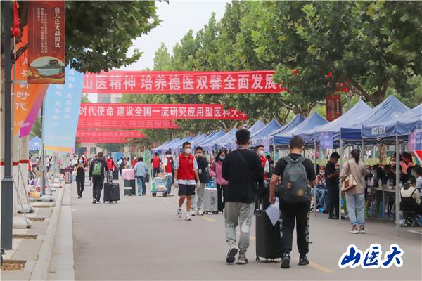 在迎新現(xiàn)。徽耪湃惹櫚男α,一項(xiàng)項(xiàng)貼心的服務(wù),歡迎著來自祖國各地的莘莘學(xué)子,新同學(xué)們暫別家鄉(xiāng)、奔赴山醫(yī),今天是和山醫(yī)相識的第一天,今后從陌生到熟悉、從相識到相伴,這些年輕的學(xué)子將與山醫(yī)攜手并進(jìn)、懷揣熱愛、擁抱未來,青春即將從這里展翅飛翔!