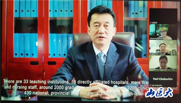 劉春在致辭中代表學校對大會召開致以熱烈:兀遠矸郊偽霰硎救攘一隊K賦鮒卸碭髁煊蠔獻鶻裘,成果斐然,希望雙方以此次會議為契機,加強溝通協作,深挖合作潛力,寬領域、全方位推進務實合作,促進區域高等醫學教育和醫療衛生服務質量的提升,為全球衛生健康事業的發展做出積極貢獻。