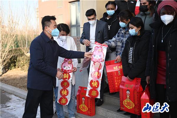 劉春向留學生們致以新年問候并表示,學校高度關注大家的健康平安,在新春來臨之際送上關懷。他鼓勵同學們珍惜時光、努力學習,講好中國故事山醫故事,做好中外文化交流使者。劉春詳細詢問國際教育學院假期工作安排,強調要做好服務保障,讓學生們度過一個平安祥和的中國年。