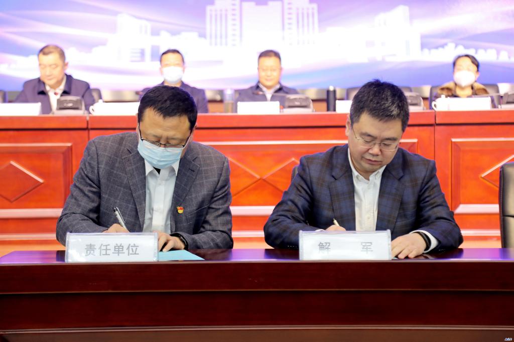 會上,解軍與部門、院系代表簽訂了《社會綜合治理目標管理責任書》《消防安全目標管理責任書》。