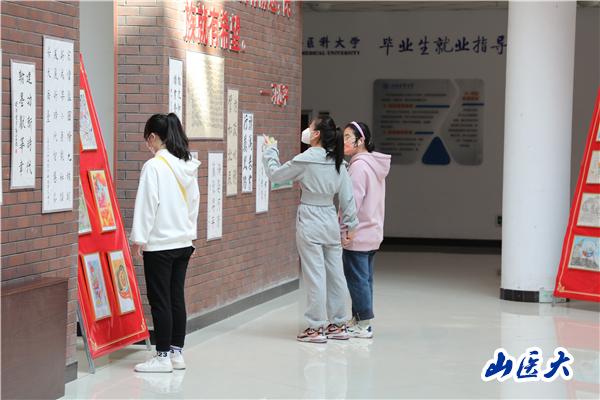本次展出的優秀藝術作品,是從全校7000多名同學完成的作品中選出,涵蓋了書法、手繪、手抄報、攝影、微視頻、手工作品等不同的類型。這些作品取材現實,書寫情懷,定格當下,展現了新時代十年共圓中華民族偉大復興中國夢的生動實踐,通過豐富的色彩、完美的造型和源于生活的感悟,彰顯了鮮明的主題和精湛的制作技藝,表達了對新時代的熱情謳歌和深情禮贊,師生們從中可以深刻感受到新時代這十年巨變帶來的心靈震撼。這些作品,體現了山醫學子深入學習宣傳貫徹黨的二十大精神,與黨同心、與時代共振的政治覺悟,同時也是一次以原創作品宣講黨的二十大精神的主題活動。