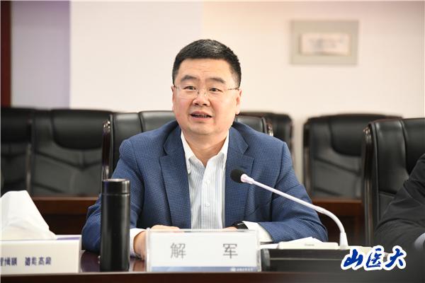 3月22日下午,我校在中都校區五層會議室召開附屬醫院建設情況考核工作啟動會,校長解軍出席會議并講話。學生工作部、研究生工作部、教務部、科學技術部、人事部、研究生學院、畢業生就業指導中心、醫院管理部負責人,附屬汾陽醫院、第六醫院、附屬臨汾醫院、附屬運城醫院、附屬太原中心醫院、附屬忻州醫院、附屬呂梁醫院、附屬晉中醫院、附屬精神衛生醫院9所醫院的主要院領導、分管院長和科教部門負責人參加了會議。會議由校黨委常委、副校長劉春主持。