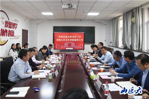 4月18日下午,學校主題教育領(lǐng)導小組組長、校黨委書記王軍,學校主題教育領(lǐng)導小組成員、校黨委常委、副校長成曉龍與學校相關(guān)部門負責人,深入公共衛(wèi)生學院專題調(diào)研國家高水平公共衛(wèi)生學院建設(shè)工作。調(diào)研中,王軍一行認真聽取了高水平公共衛(wèi)生學院建設(shè)情況,實地走訪了教學科研場所,與公共衛(wèi)生學院領(lǐng)導班子、教師代表就加快推進高水平公共衛(wèi)生學院建設(shè)進行了充分交流討論,并從加強頂層設(shè)計、重視動態(tài)定位、堅持問題導向、抓牢發(fā)展機遇和平臺優(yōu)勢等多個方面給予了具體指導,全力推動高水平公衛(wèi)學院建設(shè)任務(wù)落到實處、取得實效。