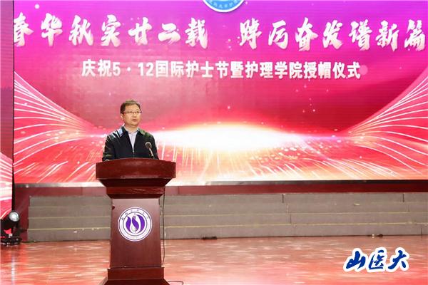 王軍代表全校師生醫(yī)護(hù)員工向長(zhǎng)期以來(lái)堅(jiān)守在護(hù)理工作崗位、辛勤耕耘在護(hù)理教育一線的同志們致以誠(chéng)摯的問(wèn)候和節(jié)日的:兀蜆憒蠡だ硌ё猶岢雋恕暗懔撩蝸,踔厲奮發(fā)”“甘于奉獻(xiàn),大愛(ài)無(wú)疆”“苦練本領(lǐng),知行合一”的諄諄囑咐,鼓勵(lì)大家作為健康中國(guó)的生力軍,要兼具博愛(ài)之心、精湛技藝和創(chuàng)新精神,在燃燒自己、照亮別人的南丁格爾精神指引下,以勤為徑、以苦作舟,用手中的蠟燭點(diǎn)燃前進(jìn)的方向,向信仰看齊,向夢(mèng)想致敬,向未來(lái)出發(fā),為書寫健康中國(guó)藍(lán)圖,做出自己更大的貢獻(xiàn)。