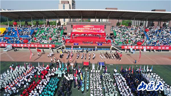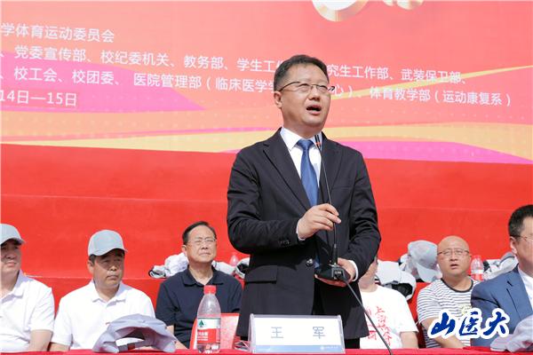 解軍在開幕辭中指出,體育一直是德智體美勞“五育并舉”的重要內容,是落實立德樹人根本任務的重要途徑。長期以來,學校以培養卓越醫師為目標,不斷提高體育教育水平,在體育課程改革、校園體育文化、學生體質健康、競技體育等方面多點布局、全面開花。近年來,學校高度重視體育教育投入,大力支持開展全覆蓋、高質量的體育活動,全面推行各項舉措以提高學生健康水平,學生體質狀況逐年提升。近三年,學校足球、籃球、排球、健美操等代表隊,多次代表學校參加國家級及省級比賽并取得了驕人的成績。這些成績的取得,激勵著更多的師生醫護員工更加熱愛體育,強身健體。六十重開新甲子,既是漫長的時間跨度,更是一個重要的里程碑時刻。本屆運動會恰逢六十甲子,是有史以來規模最大、比賽場次最多、參賽單位最全的一次運動會,是所有山醫人團結相聚的一次盛會。希望全體運動員、全體裁判員會堅持“友誼第一,比賽第二”的原則,以更快、更高、更強的體育精神投身比賽,賽出友誼、賽出公平、賽出水平。本屆運動會一定能夠辦成精彩、團結、奮進的盛會,為早日建成全國一流研究應用型醫科大學貢獻青春力量和體育力量!