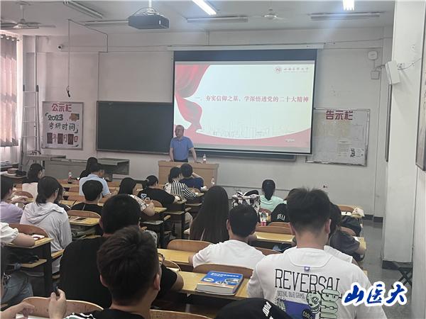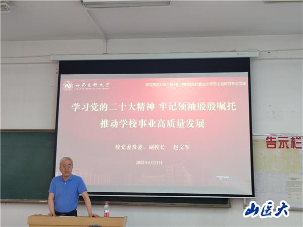 趙文軍所做題為《學(xué)習(xí)黨的二十大精神 牢記領(lǐng)袖殷殷囑托 推動學(xué)校事業(yè)高質(zhì)量發(fā)展》的黨課。黨課內(nèi)容圍繞學(xué)習(xí)貫徹黨的二十大精神這條主線,結(jié)合習(xí)近平總書記歷次考察調(diào)研山西重要講話重要指示精神,從“夯實(shí)信仰之基,學(xué)深悟透黨的二十大精神”、“扛牢重大使命,扎實(shí)推進(jìn)中國式現(xiàn)代化的山西實(shí)踐”、“牢記領(lǐng)袖囑托,為推進(jìn)中華民族偉大復(fù)興貢獻(xiàn)山醫(yī)力量”三個方面與學(xué)院師生進(jìn)行面對面交流,啟迪師生如何學(xué)有所悟、學(xué)有所得,如何更好的開展工作和成長成才。