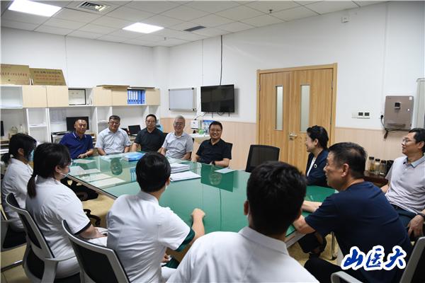 在介休市委書記任光耀、副市長韓瑜及醫院工作人員等陪同下,王軍一行首先看望了在介休市人民醫院相關科室值夜班的我校臨床實習學生,并與值班醫生等進行了充分的溝通交流。王軍對介休市人民醫院為學校臨床教育教學工作做出的貢獻表示衷心感謝,對校、院雙方多年來的友好協作、共同育人工作給予充分肯定,對在院實習的學生表示誠摯問候。他指出,臨床教學是培養醫學生臨床實踐能力,保證人才培養質量的重要階段,臨床教學醫院是學生走向醫學崗位的第一站,醫院的帶教老師是學生今后醫學崗位的終身教師和人生導師。要加強醫德醫風教育,加強學校與醫院的緊密聯系,重視學生黨建工作。要加強教學基地建設,努力提高學校臨床教學基地的教育教學水平,切實把臨床教學管理工作做好、做實,讓學生滿意,讓家長放心。王軍勉勵同學們要珍惜臨床實習機會,服從醫院管理規定,嚴格要求自己,多向指導老師學習,敞開心扉與老師交流,努力提高臨床技能水平。同學們紛紛表示,在實習崗位上跟著帶教老師學習的收獲很大,在今后的實習工作中,將更加勤于學習、踏實肯干,以優異的成績回報母校、回饋社會。