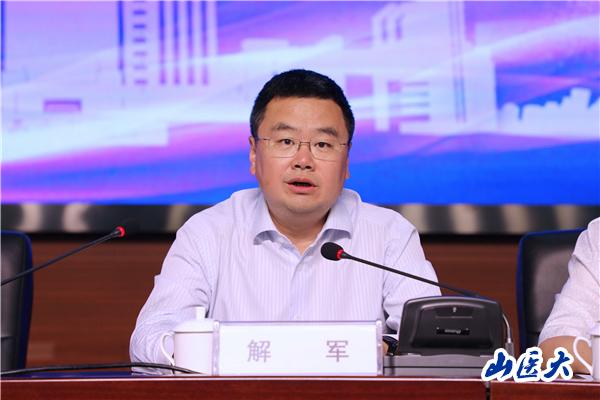 解軍在講話中對學校下半年工作進行了部署。他指出,過去的半年,學校重點推進了“1+8”工作,推動主題教育走深走實,在8個方面取得了重要工作進展,但仍有很多工作需要在下半年加力推進,甚至要下大力氣找出破解方法。面對全國高校百舸爭流的新局面,要搶抓機遇,拿出“奮不顧身”的勇氣和“打硬仗”的精氣神,突圍破冰、逆水行舟。要牢牢把握學校工作總體要求、堅持主動作為、部門聯動、資源優化、聚力攻堅,重點堅持“1115”工作,要鞏固拓展學校發展的一號成果——學習貫徹習近平新時代中國特色社會主義思想主題教育成果,繼續寫好主題教育“后半篇文章”;要抓牢學校發展的一號工程——高等教育百億工程,堅持問題導向和目標導向,在科技創新上求突破,在深化改革上出實招,在人才引育上下功夫,在投入保障上見成效,著力打造全國一流研究應用型醫科大學;要錨定學校發展的一號目標——“雙一流建設”,按照“2+1+1”的建設思路,全力推進“雙一流”學科創建。要聚焦學校發展的五大任務:聚焦人才培養,堅定不移深化教育教學改革,進一步深入推進卓越醫師培養行動,完善卓越人才培養體系;聚焦人才工作,堅定不移實施人才強校,強化院士引育,深化校校、校企、校院合作,加快構建以創新價值、能力、貢獻為導向的人才評價體系;聚焦國家需求,堅定不移做好科技創新,加快推進和清華大學醫學院等的深度合作,持續夯實高峰高原學科科研平臺;聚焦師生需求,堅定不移抓好民生工作,加速推進家屬院規劃改造,籌備“數字醫谷”核心區及風雨操場地下停車場建設項目;聚焦全面發展,堅定不移推進治理體系與治理能力現代化,深入推進以目標績效管理為核心的收入分配制度改革,加速醫學科學院改革進程,建立有組織科研體系。近期,還要做好防汛工作和迎新開學各項準備工作,確保師生安全和迎新工作順利進行。