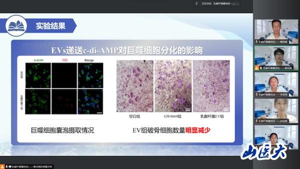 口腔醫學院參賽作品《乳酸桿菌細胞外囊泡經 c-di-AMP 調控 STING-IFN-β影響牙槽骨巨噬細胞破骨向分化的機制研究》項目創新性地探討了一種針對牙周炎導致的牙槽骨吸收的新型治療方式:乳酸桿菌釋放的細胞外囊泡內含環二腺苷酸可跨物種激活人巨噬細胞表面干擾素基因刺激因子從而調控巨噬細胞破骨向分化治療其導致的牙槽骨吸收,同時避免乳酸桿菌的產酸致齲作用。團隊成員從牙周炎導致的牙槽骨吸收入手,并深入探究其發生發展機制,提出了乳酸桿菌囊泡抑制牙槽骨吸收的治療途徑,實驗設計中,團隊成員依托于重點實驗室和臨床研究中心,熟練掌握了相關實驗途徑與實驗方法,具有理論與人員安排可行性。在實驗完善實施方面,團隊成員多學科交叉互補,專創融合,層層深入,交叉驗證為牙周炎牙槽骨吸收的臨床治療拓展新的視角。