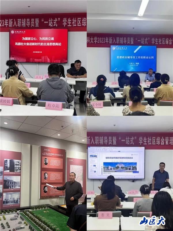 學(xué)校相關(guān)部門負(fù)責(zé)人就各自主管領(lǐng)域與參訓(xùn)人員互動交流。校黨委宣傳部部長侯小寶、學(xué)生工作部部長張晶、就業(yè)指導(dǎo)中心主任郭建鍇、校團(tuán)委副書記吳曉兵分別以“為國家立心,為民族立魂,鞏固壯大奮進(jìn)新時代的主流思想輿論”“思想政治輔導(dǎo)員工作的職業(yè)認(rèn)同”“了解校史校情,感悟百年山醫(yī)”“黨建帶班團(tuán)建,班團(tuán)建促黨建”為題做了專題講座。
