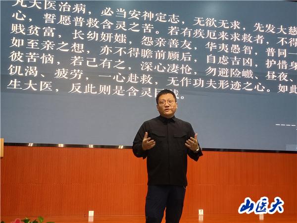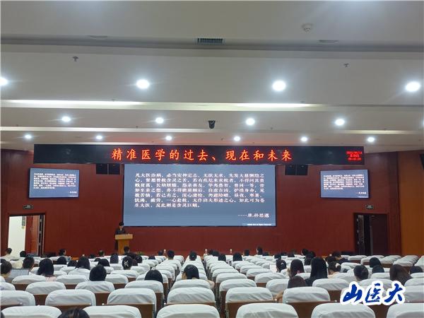 尹燁以“精準醫學的過去、現在和未來”為題,展開敘述了精準醫學的發展歷程、核心以及未來趨勢。尹燁介紹了近年來華大集團在精準醫學及大數據整合方面的突出成果;分享了利用基因診斷有效分析基因或染色體異常以實現對其監測與預防,成功輔助、指導臨床個性化治療;分析了打造擁有自主知識產權的基因測序儀的重要性及必要性;展望了未來精準醫學的需求將會持續增加,基因檢測有望在臨床方面有更快速的推廣和普及。報告深入淺出、視野寬闊,為我校師生送上了一場學術盛宴。隨后,尹燁與參會的師生代表進行了交流互動。