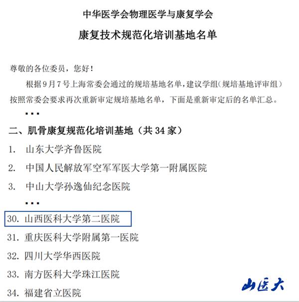為全面系統(tǒng)地提升康復醫(yī)學專業(yè)技術人才的臨床執(zhí)業(yè)能力和專業(yè)素質,促進康復醫(yī)學專業(yè)技術人才隊伍的建設和康復醫(yī)學事業(yè)的高質量發(fā)展,由中華醫(yī)學會物理醫(yī)學與康復學分會牽頭,在全國遴選康復技術規(guī)范化培訓基地。此次培訓基地的獲批,體現了業(yè)內同行對我校第二醫(yī)院康復醫(yī)學科規(guī)范化建設工作的高度認可和肯定,夯實了二院康復醫(yī)學科在省內乃至國內的學術地位,也是我省康復醫(yī)學人才建設發(fā)展的一個重要里程碑,對我省康復評定和康復治療領域人才培養(yǎng)和康復技術的規(guī)范化建設均具有重要意義。我校第二醫(yī)院將繼續(xù)推進康復醫(yī)學專業(yè)技術人才隊伍的建設和康復醫(yī)學事業(yè)的高質量發(fā)展,為健康山西建設貢獻康復學界的力量。