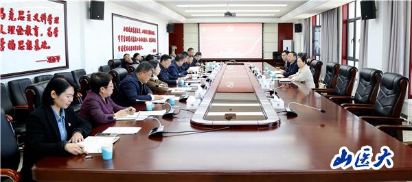 會議要求,強化價值引領,把習近平文化思想和習近平總書記重要講話精神貫徹落實到學校工作各方面全過程。要堅持以習近平新時代中國特色社會主義思想為指導,全面貫徹黨的二十大精神,深刻領悟“兩個確立”的決定性意義,增強“四個意識”、堅定“四個自信”、做到“兩個維護”,自覺擔負起新的文化使命。要堅持不懈推動習近平新時代中國特色社會主義思想進教材、進課堂、進學生頭腦,自覺承擔文化使命,構建和打造具有中國特色、山醫氣派的新型文化智庫。要著力提升校園文化顯示度。將中華優秀傳統文化融入學科建設,以優秀特色文化涵養一流學科、一流人才,打造文化氣息濃郁的“大美山醫”,不斷擴大學校文化影響力,教育引領廣大師生醫護員工踐行社會主義核心價值觀,不斷開創學校宣傳思想文化工作新局面。