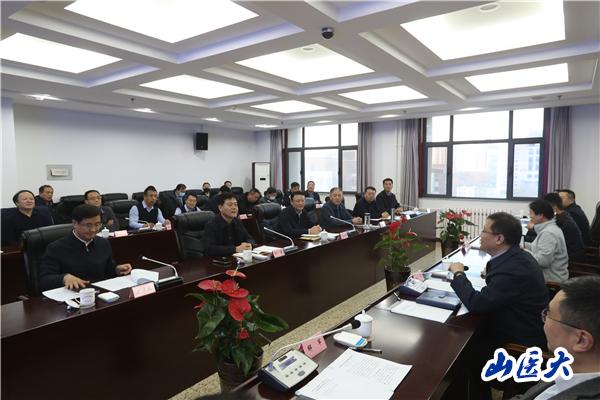 11月27日,晉中市委副書記、市長劉星帶領市直有關部門和市縣兩級部分醫療機構負責同志,深入學校調研并召開市校協同創新發展座談會。校黨委書記王軍出席并主持座談會,校長解軍出席會議。晉中市副市長張擁軍,市政府黨組成員、秘書長裴彥。5澄筆榧橋碓呂,校黨委常委、省紀委監委駐校紀檢監察組組長韓樹彪,校黨委常委、副校長劉春,校黨委常委、副校長趙文軍,學校相關部門單位負責人和部分學科專家參加座談。