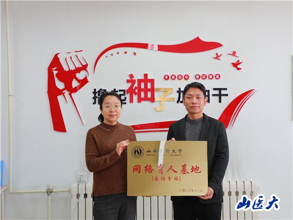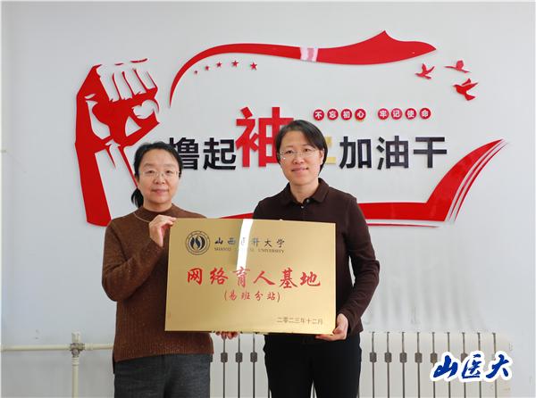 會上,彭月蘭為武裝保衛部和兒科醫學系網絡育人基地(易班分站)進行授牌。