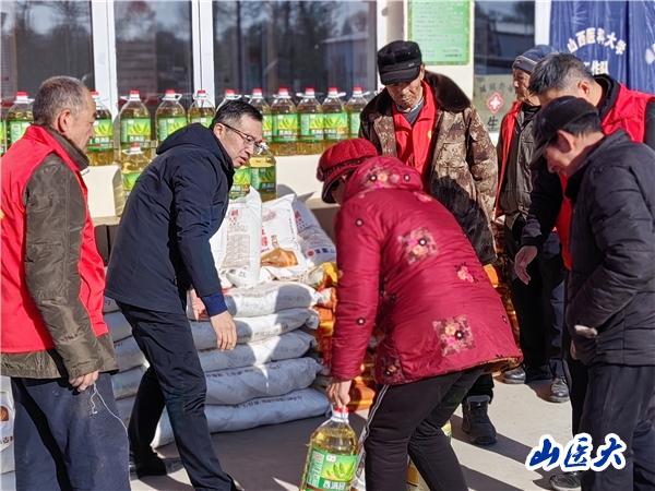 隨后,焦向英與駐村工作隊和村黨員志愿者一起為村民發放大米、白面、食用油等。天氣雖然寒冷,但發放現場氣氛熱烈,井然有序。沉甸甸的慰問品不僅給村民帶來濃濃的新春祝福,也為村民心里帶來了滿滿的新年希望。