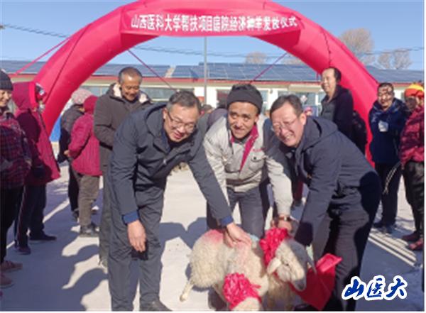 2024年1月12日,學(xué)校駐右玉縣新城鎮(zhèn)野場村工作隊(duì)在幫扶村舉行“c7c7.app幫扶項(xiàng)目庭院經(jīng)濟(jì)種羊發(fā)放儀式”,為在村56戶常住村民發(fā)放種羊。學(xué)校黨委常委、副校長、駐縣大隊(duì)長焦向英和新城鎮(zhèn)黨委書記郝義參加。