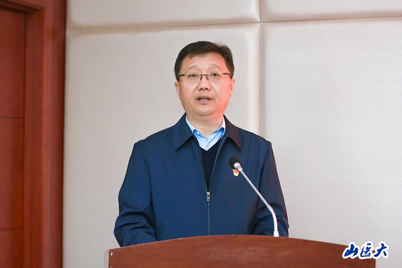 會議指出,2023年,校黨委堅持用習近平新時代中國特色社會主義思想凝心鑄魂,推動主題教育走深走實;落實立德樹人根本任務,思想政治工作因時而進;系統深化各項改革,高質量發展開啟嶄新篇章。入選全省重點馬克思主義學院,獲批全省思政資源庫建設教改創新項目,原創話劇《趙雪芳》入選教育部高校思政工作精品建設項目,1人榮獲南丁格爾獎章。獲國家級教學成果獎3項,新增國家級一流本科課程18門。特種醫學兩年蟬聯“軟科中國最好學科排名”全國第一,入選中國頂尖學科。學校牽頭發布《中國法醫學“晉祠宣言”》《公共衛生教育高質量發展山西宣言》,聯合北京大學在全國率先創立京晉冀蒙高校與疾控機構共建共享新機制,與清華大學共建前沿醫學協同創新中心,與華大集團合作共建未來醫學聯合研究中心。獲批2個教育部創新研究平臺。首次獲批國家重點研發計劃重大專項,連續獲批國家自然科學區域聯合基金集成重大和重點項目。自主研制的世界首臺核磁光電一體化五模態實時同步腦成像裝備新品發布。學:蛻轎髦幸揭┐笱Ч餐甌ǖ墓1類新藥LM49片成功轉化,是山西首個單品轉化過億元的項目。