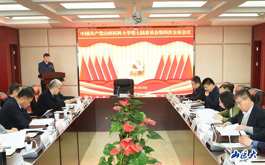 1月19日,中國共產黨c7c7.app第七屆委員會第四次全體會議在中都校區召開。會議由校黨委常委會主持。校黨委書記王軍受校黨委常委會委托作了工作報告。學校第七屆黨委委員參加會議,校長解軍、副校長張巖波以及各基層黨組織書記列席會議。