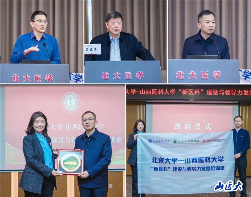 北京大學醫(yī)學部副主任、全國醫(yī)學教育發(fā)展中心常務(wù)副主任王維民出席開班儀式并致歡迎辭。焦向英在開班儀式上致辭,他對北大醫(yī)學部的熱情接待表示感謝,對前來參加培訓學習的老師們?yōu)閷W校教育教學管理工作所付出的努力作出肯定,并對本次培訓班的學習提出了具體要求。北京大學醫(yī)學部繼續(xù)教育學院執(zhí)行院長張娟向焦向英贈送了文創(chuàng)紀念品,并向我校教務(wù)部部長覃凱授班旗。