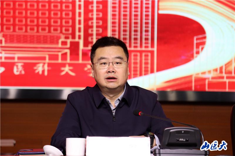 解軍總結了過去一年學校建設發展取得的突出成績,對2024年重點工作進行了部署。他指出,2023年學校牢牢扛起“雙一流”創建使命,確立“2+1+1”學科建設工作思路,取得了一系列突破性進展和標志性成果,為推進學校高質量發展奠定了堅實基礎。解軍強調,在學校高質量發展滾石上山、爬坡過坎的關鍵時期,要高效統籌、貫通融合“雙一流”創建與全國一流研究應用型醫科大學建設,匯聚發展合力、增強發展動力;要堅持目標導向、結果導向,從時間定位、目標定位、標準定位上,進一步理清建設任務和工作要求,強化責任擔當、全力抓好落實;要圍繞工作要點提出的26個“堅持不懈”和8項重點工作,聚焦學科建設、教育教學、科研創新、人才引育、保障體系五個領域,建設一流優勢學科、培養一流創新人才、培育一流科技成果、打造一流師資隊伍、構建一流保障體系,打好學校高質量發展“組合拳”,以優異成績迎接建校105周年。