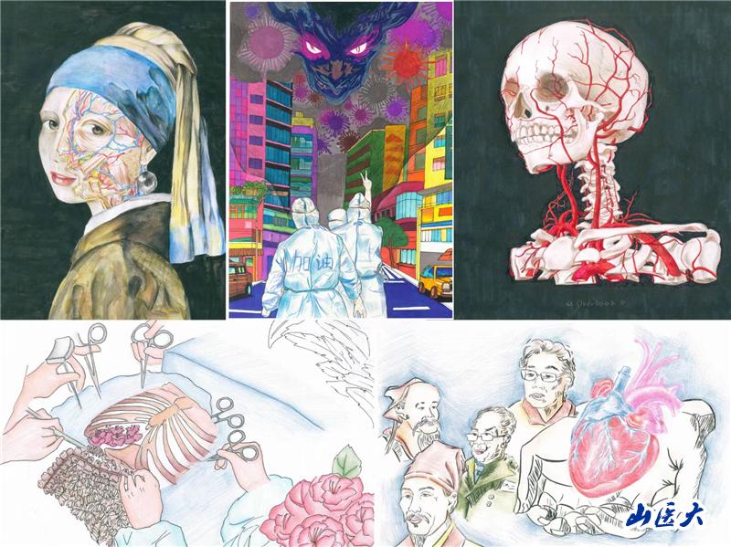 自2023年10月下旬開賽以來,歷時近三個月,數百名參賽學生精心構思,傾心創作出百幅美輪美奐的繪畫作品。同學們通過圖畫闡釋醫學的精深奧妙,呈現人體復雜的生理結構與藝術魅力的有機融合,產生了鮮明的藝術效果,給人以視覺的沖擊和心靈的震撼,更展現出青年學生豐富奇妙的想象力和創造力。大家還聯系實際創作出一批歌頌醫護人員在醫療一線救死扶傷的題材作品,拓展了創作領域和內容。