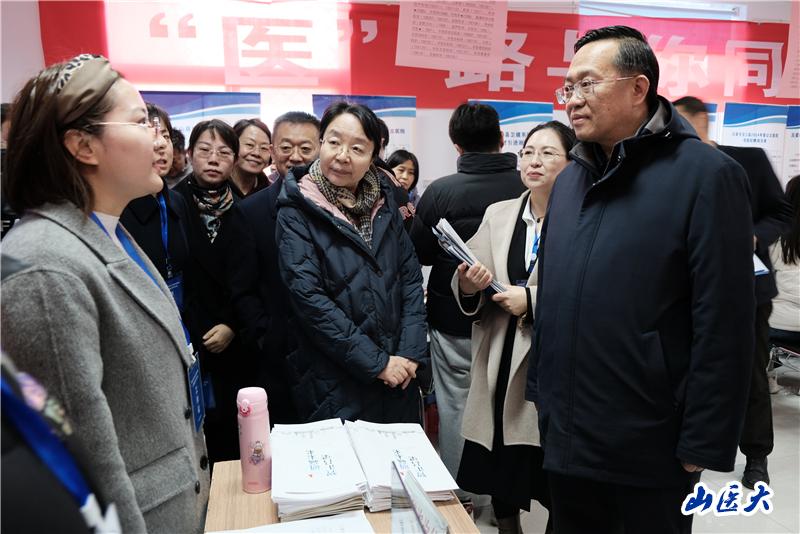 3月8日上午,由呂梁市委常委、組織部長張欣寧帶隊,呂梁市委、人社局、衛健委、人才辦、部分醫院主要負責人一行專程對此次招聘活動進行了現場調研,校黨委副書記彭月蘭與其進行會談,校畢業生就業指導中心等部門負責人參加了此次調研。