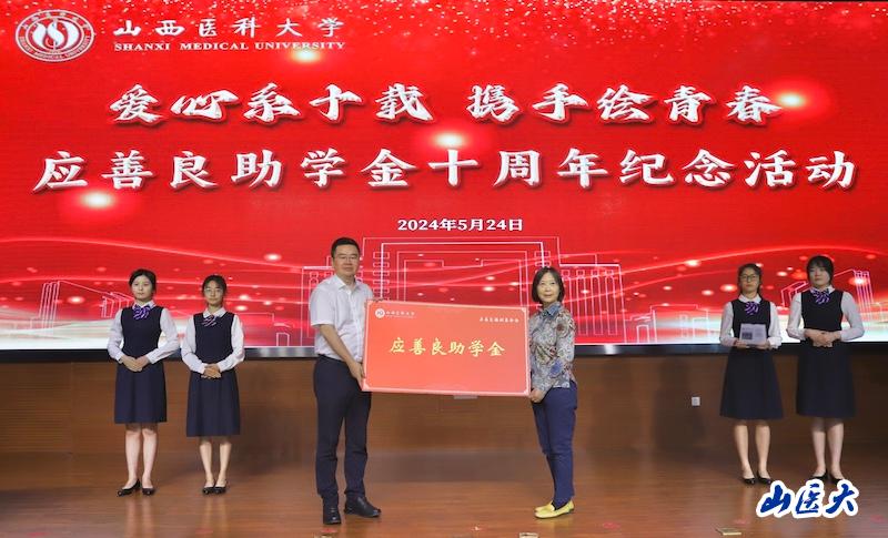 在助學金發放儀式上,各位嘉賓和領導為受助學生代表頒發了助學金。受助學生通過制作感恩視頻、贈送手繪山醫畫作、合唱表演等不同方式向基金會和學校表達了深深的感激之情,并表示將努力學習,不辜負大家的期望。