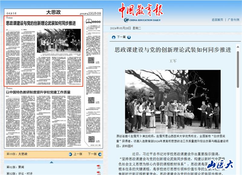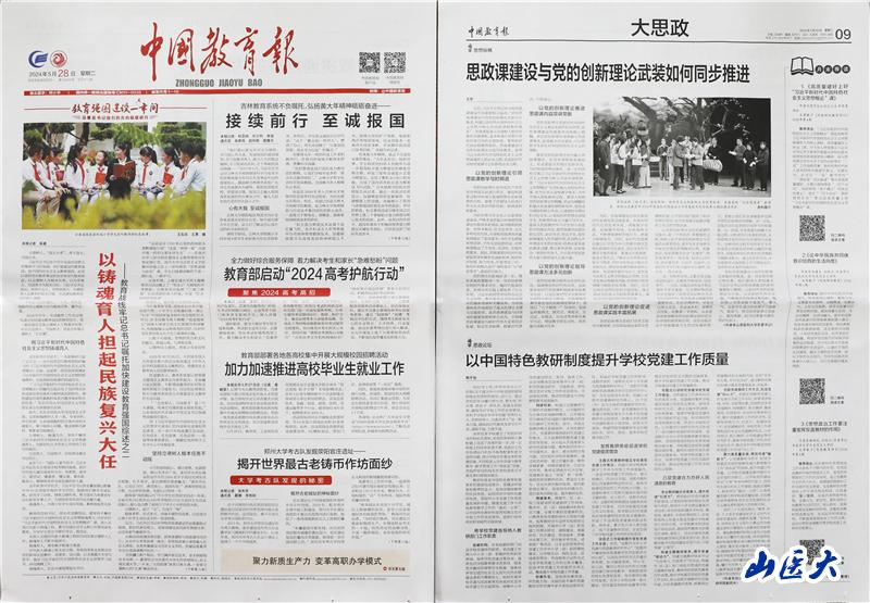 5月28日,《中國教育報》第9版“大思政”版刊發(fā)我校黨委書記王軍的署名文章《思政課建設(shè)與黨的創(chuàng)新理論武裝如何同步推進(jìn)》。