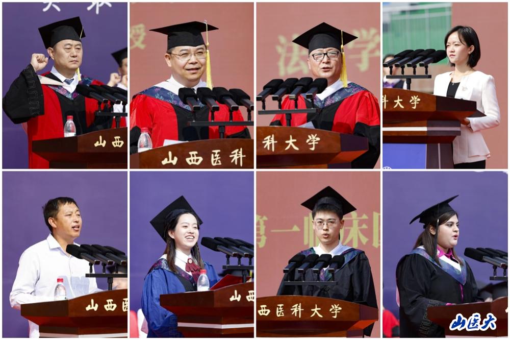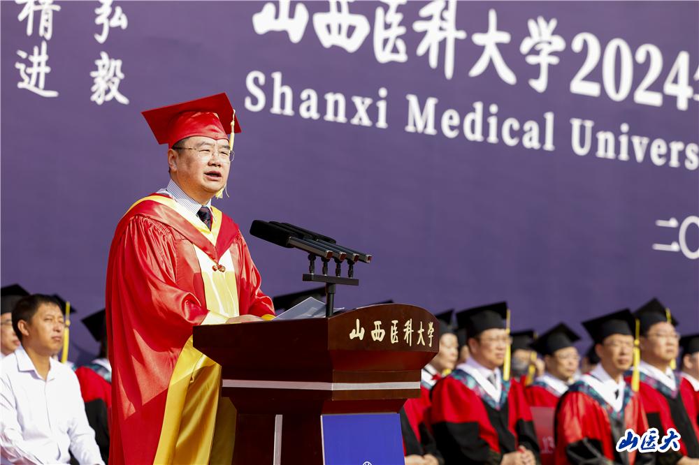 解軍在致辭中帶領(lǐng)全體畢業(yè)生一起回望學(xué)校歷史,致敬一代代不負(fù)時(shí)代重托的山醫(yī)青年。他指出,學(xué)校建立之初的山醫(yī)人是奮斗的、熱血的,他們在民族紅色血脈的召喚中應(yīng)運(yùn)而生、堅(jiān)毅篤行,紅色是他們的青春底色;共和國成立后的山醫(yī)人是質(zhì)樸的、無私的,他們在國家重大戰(zhàn)略指引下來到山西承擔(dān)使命,為強(qiáng)國建設(shè)、民族復(fù)興貢獻(xiàn)力量,奉獻(xiàn)是他們的青春底色;新時(shí)代的山醫(yī)人是堅(jiān)定的、擔(dān)當(dāng)?shù)?,肩負(fù)教育強(qiáng)國和健康中國建設(shè)重任,在中國式現(xiàn)代化的新征程上挺膺擔(dān)當(dāng),奮斗是他們的青春底色。