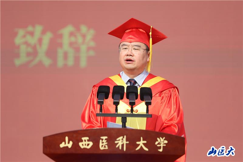 同學們,選擇了醫學,就是選擇了擔當,選擇了為人民健康事業奉獻自己的智慧和力量。在過去幾年里,你們孜孜不倦學習專業知識,日日精進錘煉專業技能,用努力和汗水鑄就了今日成就。今天,你們身穿畢業服,臉上洋溢著自信與期待,這是你們人生中一個重要的里程碑,是你們醫學職業生涯又一個新的起點。面對即將交到你們手里的接力棒,許多同學已經給出了自己的選擇。你們中有熱忱如炬的圓夢人,邁進頂尖學府繼續深造;你們中有熱情如火的追夢者,穿上軍裝守護萬家安寧;你們中有奏響青春最強音的實干者,到基層去,到祖國西部去實現理想抱負。我號召同學們,畢業后奔赴基層、扎根西部,到祖國和人民最需要的地方去,天地廣闊、大有可為。
