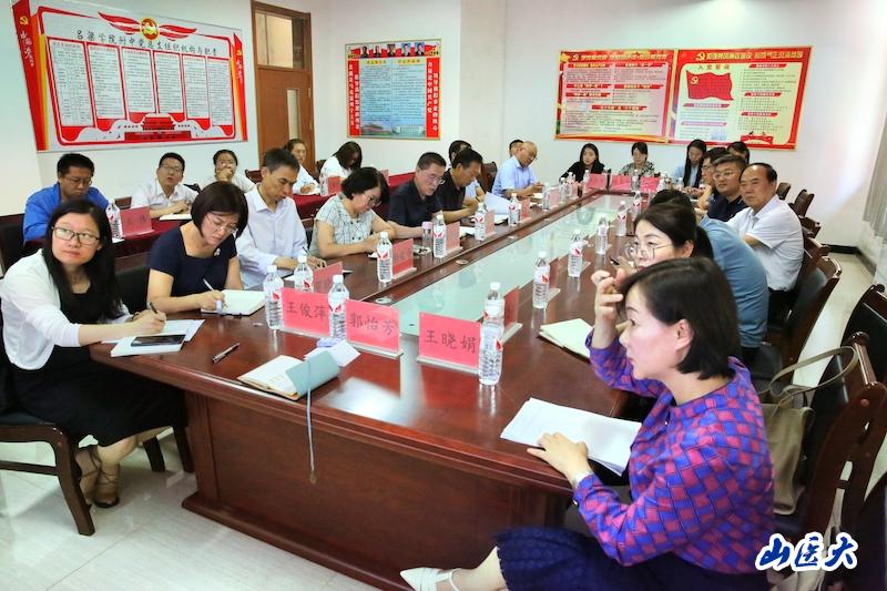 為深入學習貫徹習近平總書記關于學校思政課建設的重要指示精神,協同推進呂梁片區大中小學思政課一體化建設,6月19日,由我校牽頭,與呂梁學院、呂梁大中小學思政課一體化建設研究中心、呂梁市教育局共同舉辦的“學習貫徹習近平總書記關于學校思政課建設的重要指示精神座談會暨呂梁片區大中小學思政課一體化建設高質量發展集體備課會”在呂梁學院附屬高級中學舉行。呂梁學院黨委副書記薛光武出席會議并講話。我:吐懶貉г旱澄、馬克思主義學院,呂梁市教育局,呂梁大中小學思政課一體化建設研究中心等部門、單位相關負責人,呂梁學院附屬高級中學、呂梁市和離石區中小學、幼兒園、職業學校的思政課教師代表共30余人參加了會議 。