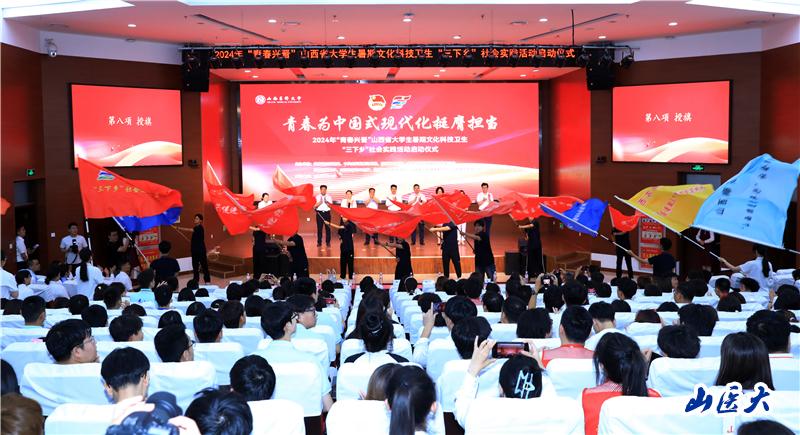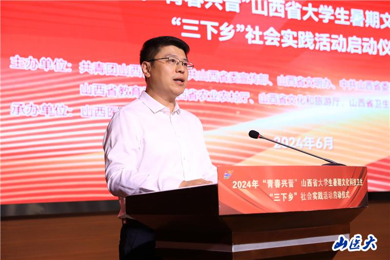 6月25日,2024年“青春興晉”山西省大學生暑期文化科技衛生“三下鄉”社會實踐活動在我校中都校區啟動。共青團山西省委書記張鈞出席啟動儀式并講話,我校校長解軍致辭。山西省文明辦專職副主任李立平、團省委副書記吳興、省教育廳二級巡視員胡雅林、省農業農村廳二級巡視員趙小英、省衛生健康委員會二級巡視員李秀紅、省文化和旅游廳總經濟師吳雪陶等出席活動。省內20所高校團委負責同志及“三下鄉”社會實踐團隊教師、學生代表共計300余人參加了活動。校黨委副書記彭月蘭主持啟動儀式。