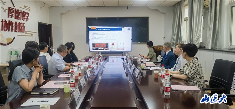 隨后,舉行了兩校中外合作辦學洽談會。黨委常委、副校長焦向英出席會議,教務部、研究生學院、國際教育學院、公共衛生學院、護理學院和康復醫學等院系負責人參加座談。焦向英介紹了學校在專業建設、科學研究、人才培養及國際化等方面的辦學特色和工作亮點。他表示,這次實地到訪,進一步加深了兩校間的了解和互信,將凝聚合力推動兩:獻靼煅淶羋涫。Robin Carey對合作過程中各相關學院團隊積極、高效、細致的工作給予高度評價。他表示,兩校強強聯合,一定可以培養出更多適應新時代健康發展、國際化、高素質優秀醫學人才。