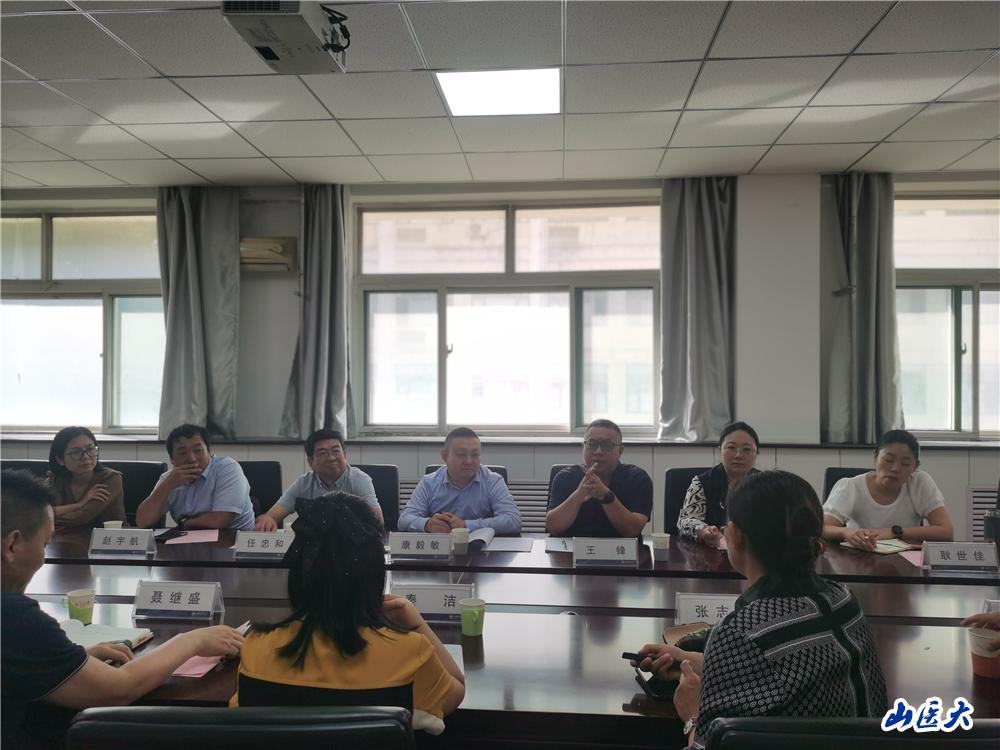 為深入推進(jìn)京晉冀蒙地區(qū)公共衛(wèi)生領(lǐng)域戰(zhàn)略合作,進(jìn)一步推動(dòng)示范性特色學(xué)院的建設(shè),交流高水平公共衛(wèi)生學(xué)院建設(shè)方面的先進(jìn)思路和成功經(jīng)驗(yàn),9月19日,內(nèi)蒙古醫(yī)科大學(xué)評(píng)建辦公室主任康毅敏、內(nèi)蒙古醫(yī)科大學(xué)公共衛(wèi)生學(xué)院黨委書記王鋒、包頭醫(yī)學(xué)院公共衛(wèi)生學(xué)院黨委書記任忠等11人組成調(diào)研組來(lái)訪我校公共衛(wèi)生學(xué)院。