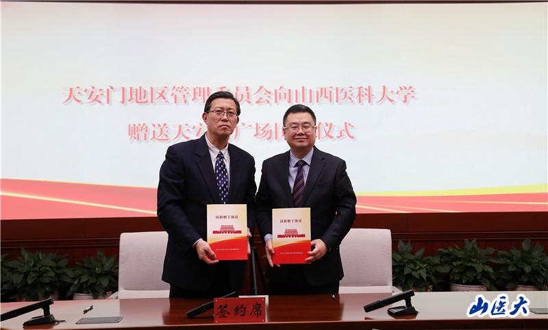 12月20日,北京市人民政府天安門地區管理委員會向我校贈送天安門廣場國旗儀式在北京舉行。天安門地區管委會黨組成員、副主任(正局長級)姚輝向學校贈送國旗,我校校長解軍代表學校簽署《國旗贈予協議》并接收國旗,學校相關師生代表參加了贈旗儀式。