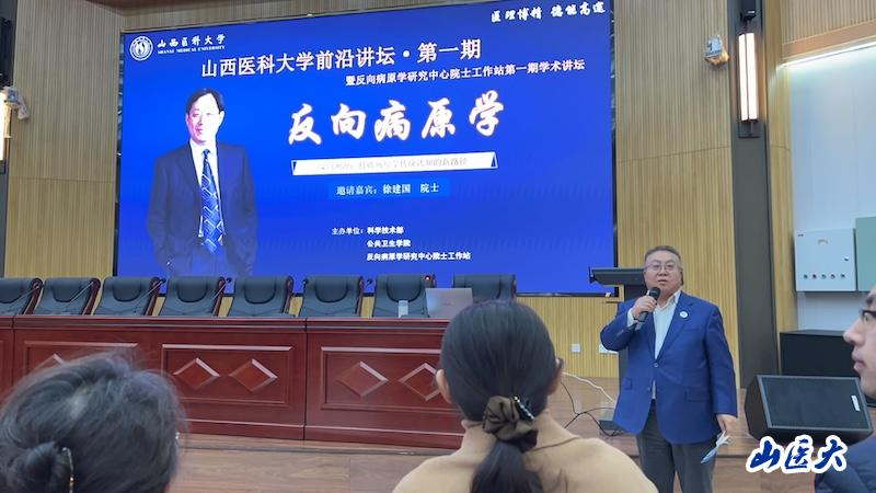 徐建國為在場師生拓寬了科研視野,啟發了新的研究思路,在場師生針對講座內容展開了的熱烈討論。王彤在主持講話中指出,反向病原學研究中心院士工作站就是把反向病原學的理論有力落實到科研實踐中,希望廣大師生積極投入到院士工作站的學術研究中,為我校建設高水平公共衛生學院貢獻力量,為山西省的新發突發傳染病預警奠定有力基礎。