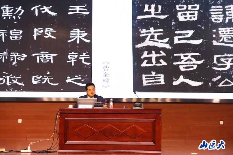 3月14日,2025年第一期“山醫博邃講堂”在我校中都校區教學辦公樓一層報告廳開講。本期為“深入學習貫徹習近平文化思想”系列專題講座之一,書法家、書法教育家劉洪生教授以《走近書法》為題,為全校黨員干部、師生醫護帶來了一場引人入勝、精彩紛呈的思政大課和文化盛宴。講座由校黨委副書記彭月蘭主持。