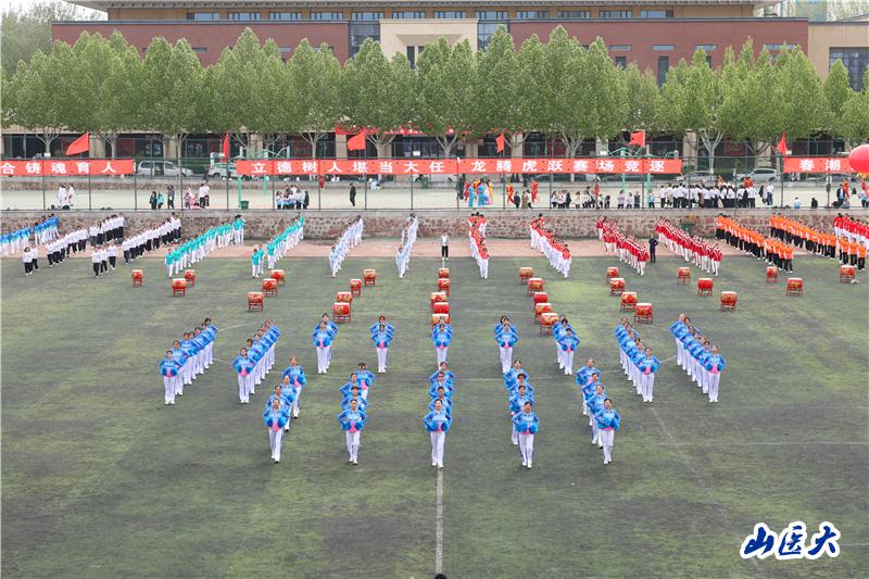 隨后,大型文體展演開始。第五臨床醫學院帶來大型舞蹈——《鼓震山河,醫脈長歌》,留學生表演了深情禮贊三晉大地的舞蹈,夕陽紅舞蹈隊和基礎醫學院學生共同表演啦啦操——《舞動中國》,第三臨床醫學院的激情啦啦操,8個院系參與的大型廣播體操等方陣的創意編排、運動之美讓開幕式熱度再度攀升。
