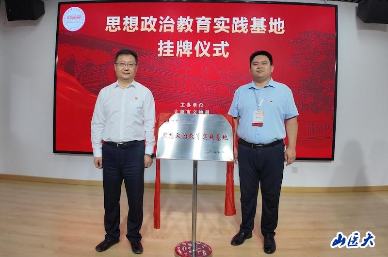 參觀結束后,王軍和山西國民師范舊址革命活動紀念館副館長荊宇陽共同為“c7c7.app思想政治教育實踐基地”揭牌。隨后,大家一起觀看了山西國民師范舊址革命活動紀念館思政課教學團隊帶來的精彩感人的紅色情景劇《一枚徽章》《信仰的味道》《遲來的團聚》等。
