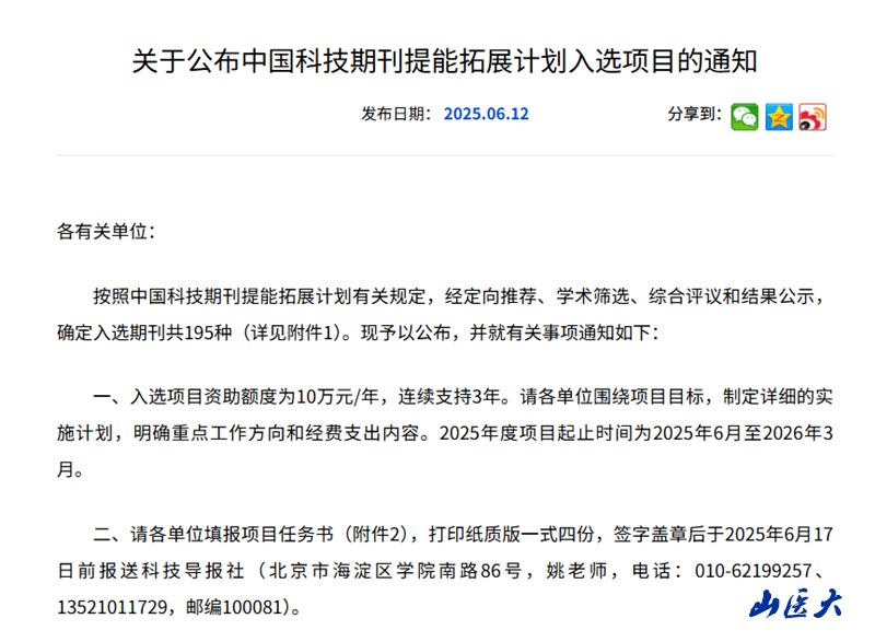 “中國科技期刊提能拓展計劃”是中國科學技術協會于2025年2月啟動的國家級期刊培育項目。該計劃精心遴選并支持一批對我國未來科技創新和產業發展具有戰略意義、學術水平高且發展潛力大的學會主辦的科技期刊,通過培育中國科技期刊卓越行動計劃的后備梯隊,為我國科技期刊的梯次進階、集約發展及整體提升奠定堅實基。Ω嚶判閆誑⒄。經過定向推薦、學術篩選、綜合評議及結果公示等嚴格程序,最終有195種期刊成功入選。