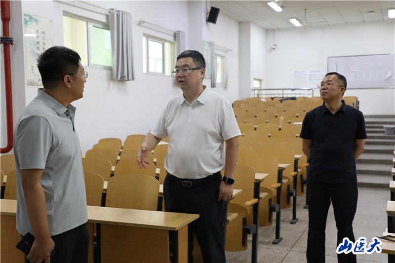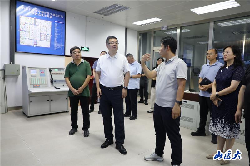 校領導一行分別到中都校區學生宿舍、校醫院、校園監控室、操場、教室、第一食堂、澡堂等場所,深入了解各部門、各單位開學前各項準備工作情況,對學校安全穩定工作作出指導,并對學生返校、教學管理、教學設備升級、教室修繕、食品安全及智慧校園建設等方面現場提出加強和改進意見。