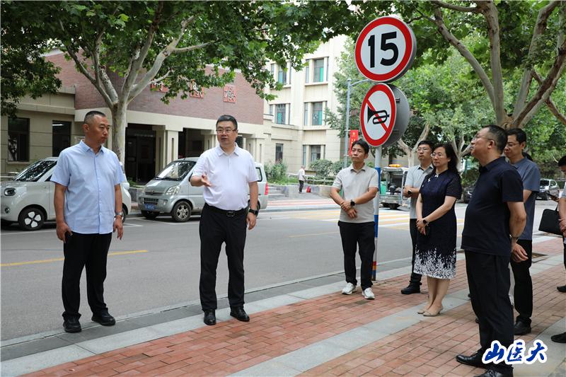 8月22日,校長解軍帶隊深入學校中都校區,全面調研秋季學期開學前準備工作,檢查重點工程建設情況,系統排查校園安全隱患,看望慰問一線工作人員并聽取意見建議。焦向英副校長以及相關部門負責人陪同檢查。