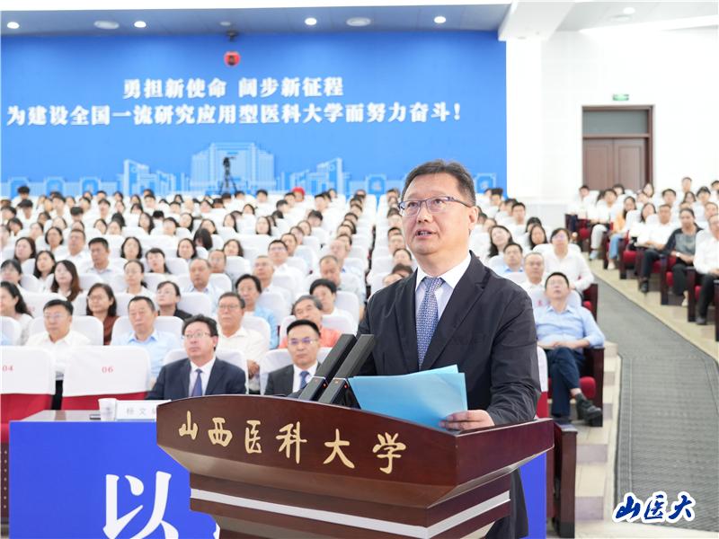 解軍以《篤學崇教、德醫礪質——著力培養德智體美勞全面發展的人民滿意的好醫生》為題,匯報了學校從“五四薪火”到“沖擊雙一流”的奮進之路,闡述了學校近20年來“三次轉型”的思考規劃和推動本科教育高質量發展實踐,介紹了學校在“大思政-1345”新醫德育人模式和“數智腦-1346”新醫科特色育人體系兩個特色典型案例方面的探索與實踐,并就審核評估準備工作與自評自建工作進行了匯報。他表示,學校發展所取得的每一項成績,都凝聚著大家的智慧與心血,堅信在各位專家指導幫助下,在省教育廳大力支持下,此次審核評估必將成為學校邁向全國一流研究應用型醫科大學的重要里程碑!