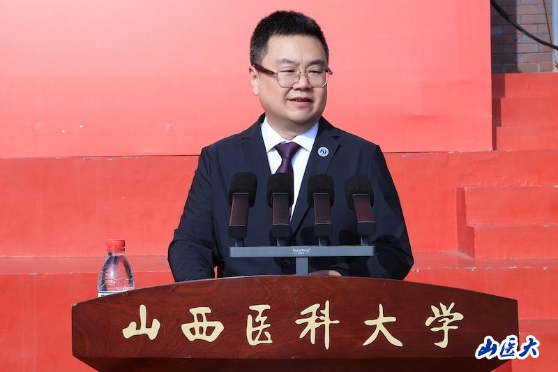 創(chuàng)新創(chuàng)業(yè)學院主持工作副院長王興作為教師代表發(fā)言,希望同學們能夠在實踐中檢驗真知、提升本領(lǐng),與人相處中常懷感恩與寬容,在科研實踐中敢于提問,在生活中珍視身心健康,嚴于律己,在未來求學和從醫(yī)生涯中,不僅學有所成,更能德有所立,讓青春在山醫(yī)閃耀!