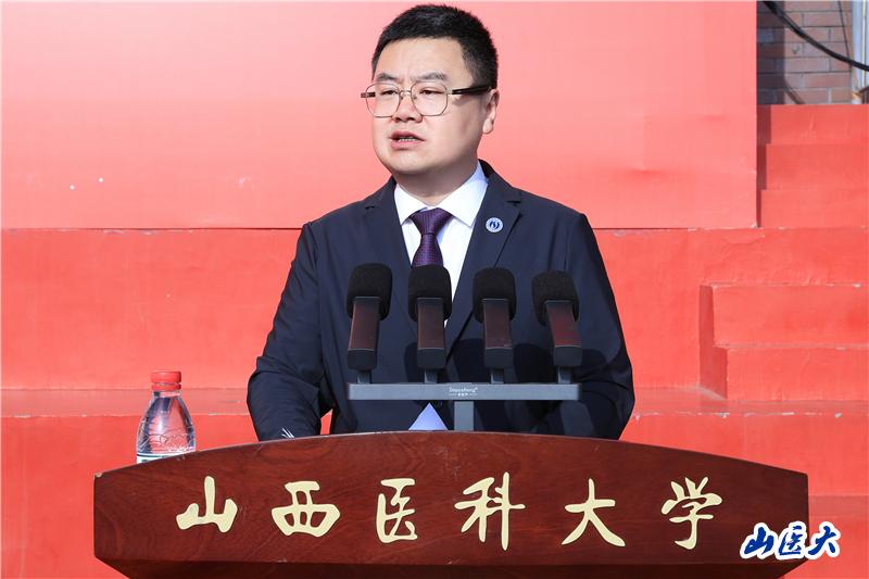 同學們。習近平總書記在今年第五次考察山西時,對廣大青年深情寄語,“要賡續紅色血脈,樹立強國有我的遠大志向,做堂堂正正、光榮自豪的中國人,勇擔民族復興的時代大任。” 這諄諄教誨為我們指明了前進方向,注入了強大動力。我相信,在不久的將來,你們的名字,將閃耀在山醫的榮耀殿堂;你們的奮斗,將匯入強國建設、民族復興的壯闊洪流。你們,必將成為山醫的驕傲、國家的棟梁、民族的希望!