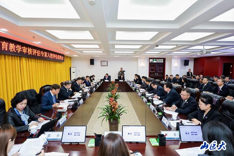 校黨委書記王軍在致辭中代表學校對專家組表示熱烈歡迎與衷心感謝。他指出,本科教育是學校發展的立身之本和戰略基石,校黨委始終把本科教育擺在中心位置,堅持以本為本、推進“四個回歸”,將審核評估作為推動內涵發展、特色創新的重要契機。他強調,線上評估期間專家組嚴謹細致、求真務實的工作作風為學校提供了寶貴指導,全校深受教育與鼓舞,學校將以此次入校評估為新的起點,全力配合專家組工作,以扎實作風和有力保障迎接考察,切實把專家意見轉化為發展動力,加快建設全國一流研究應用型醫科大學,為教育強國、健康中國建設貢獻山醫力量。