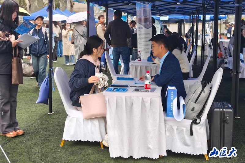 雙選會現。饔萌說ノ徽刮磺白裳歡稀D橙滓皆喝肆ψ試床扛涸鶉吮硎荊骸拔頤譴舜未20個臨床醫學和科研崗位,重點考察學生的實踐能力和創新思維。”不少熱門單位展位前,畢業生們手持簡歷有序排隊,與招聘代表深入交流。許多畢業生分享:“針對學校提前發布的單位崗位信息,我準備了簡歷,今天現場直接對接到心儀單位,效率很高。”