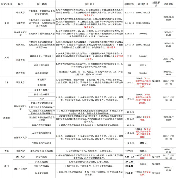 為深入推進人才培養模式改革,加快培養國際化高素質人才,根據學校鼓勵支持學生到知名高校交流、參訪和實習的相關政策,現將報名2023年寒假出國(境)短期線上線下訪學項目通知如下。